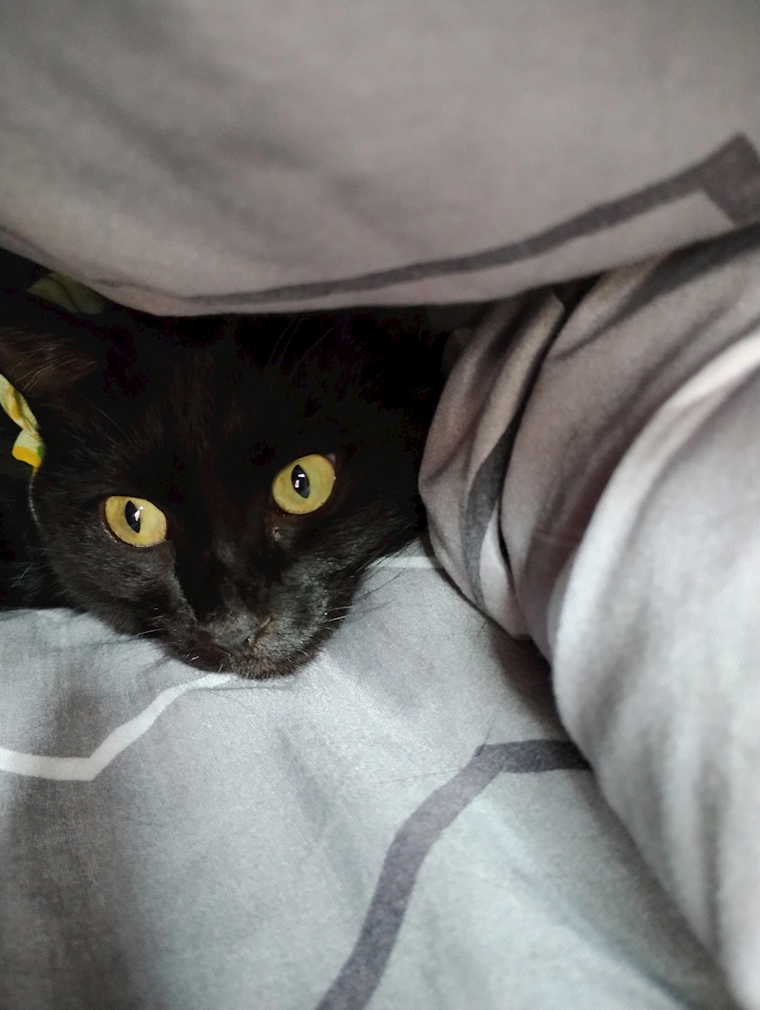 ニャンコは布団に入って