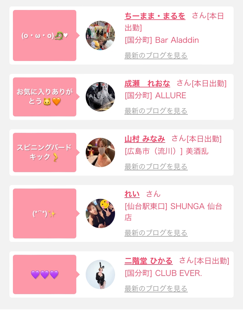 | 今夜も多数出勤してます\(^^)/ | |