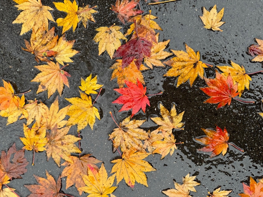 雨に濡れる落ち葉もまた綺麗🍁
