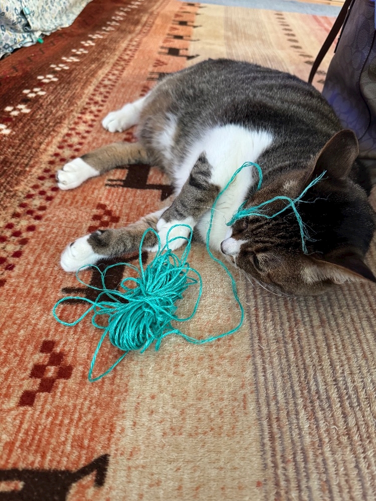 ゴミみたいな紐で全力で遊ぶマサムネ🧶