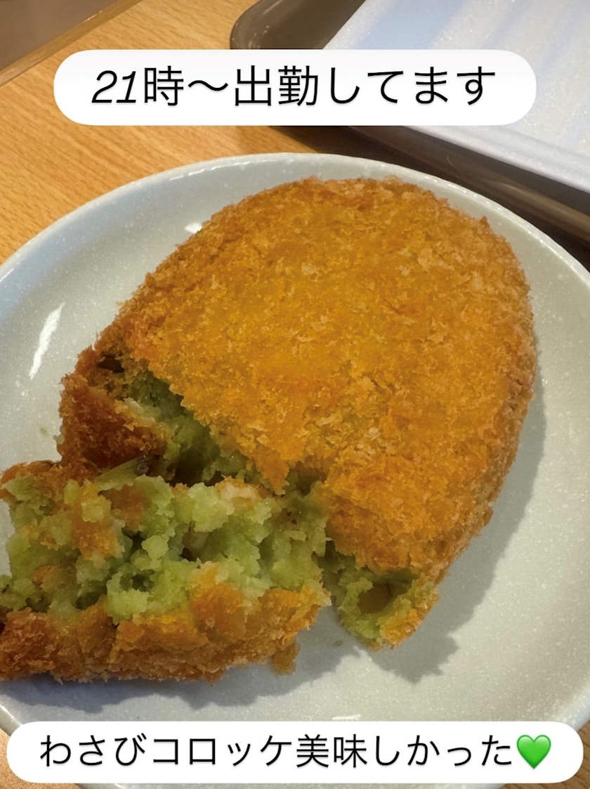 出勤前に食べた「わさびコロッケ」が、意外な組み合わせだけどクセになる美味しさで感動しちゃいました😋✨