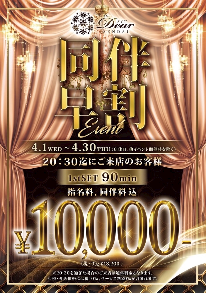 4月から同伴早割りイベントやっておりますので