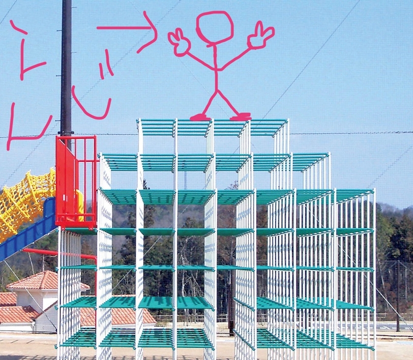 よくジャングルジムのてっぺんとか、