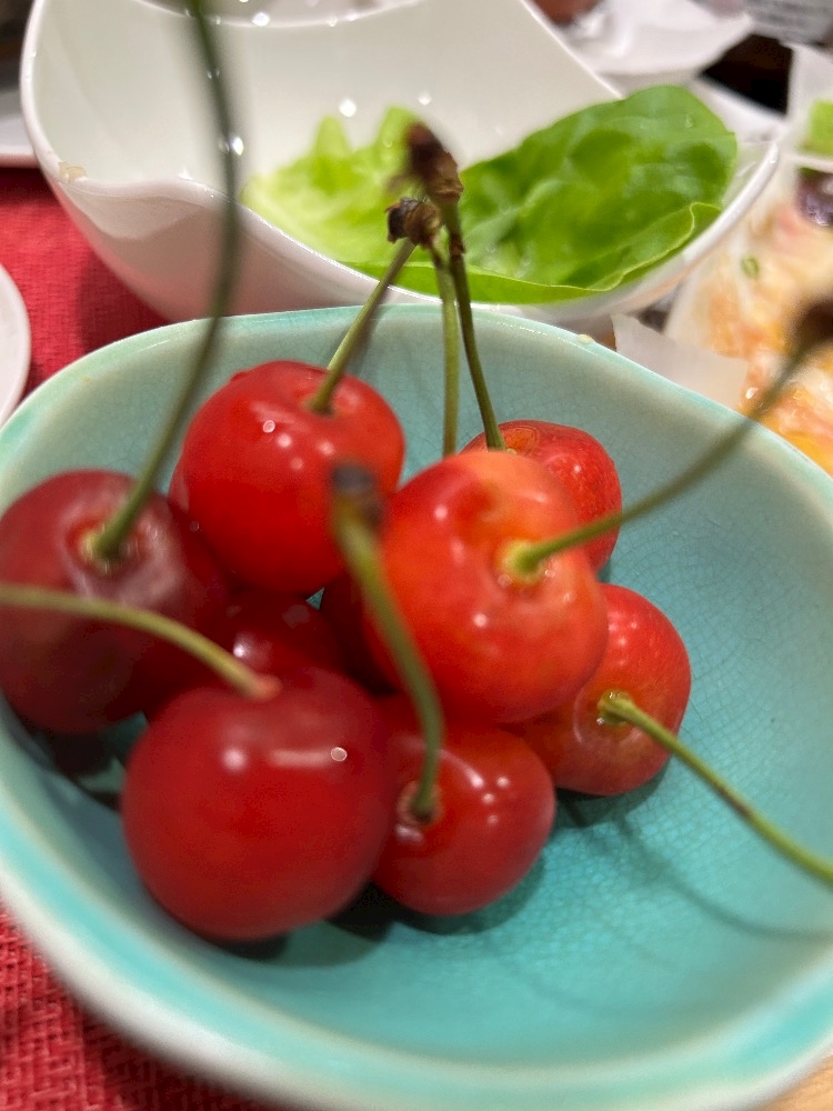 サービスで🍒とお味噌汁も