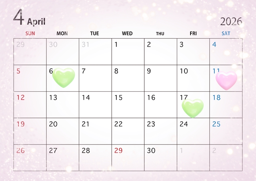 【4月の出勤日】もう今年度も終わるそうですよ。あっという間ですね。そろそろ花見の時期らしいです。花より団子のあんずさんは花見行くついでの屋台が大好きでした。今年こそ行きたいので連れてってください。