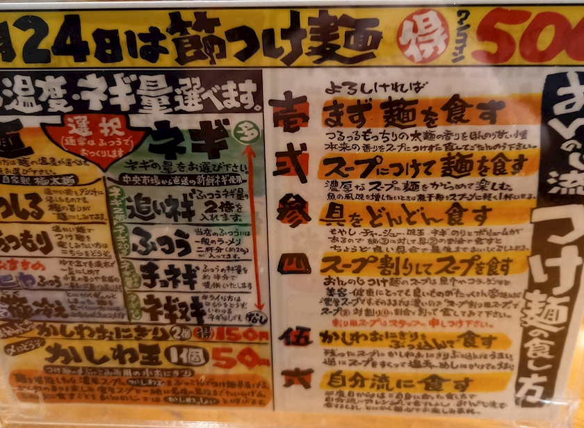 麺の温度、ネギの量の案内