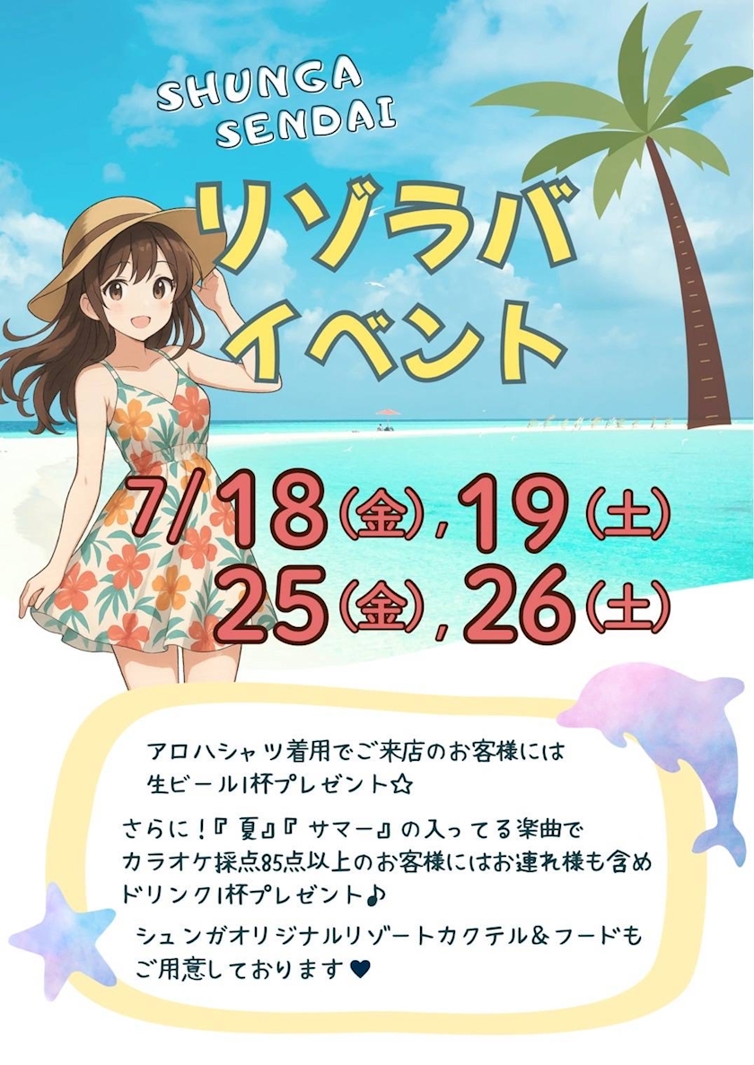 リゾラバイベント🏝️ - まりこ - SHUNGA 仙台店・シュンガ - 仙台駅東口のスナック