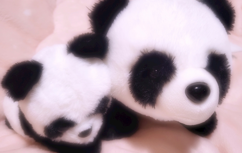 私の部屋のかわいいパンダの親子のぬいぐるみ🐼🩷
