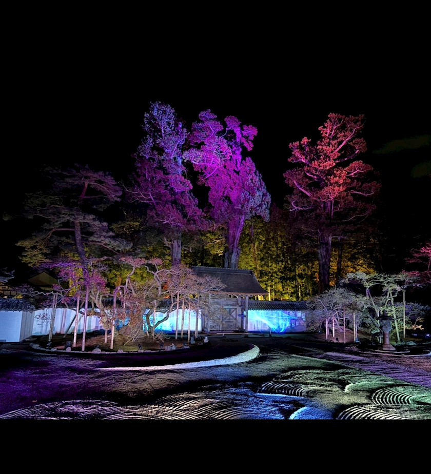 寺院内のイルミネーションを