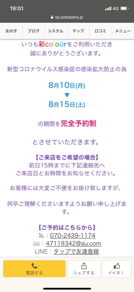 (※完全予約営業のため
