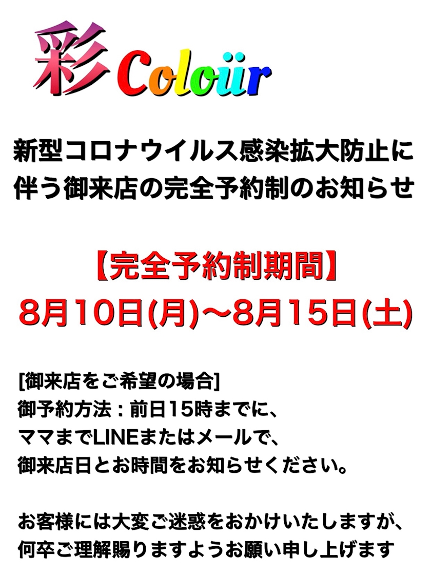 お知らせ🧚🏽♀️ - あや - 彩colour・アヤカラー - 長町のガールズバー