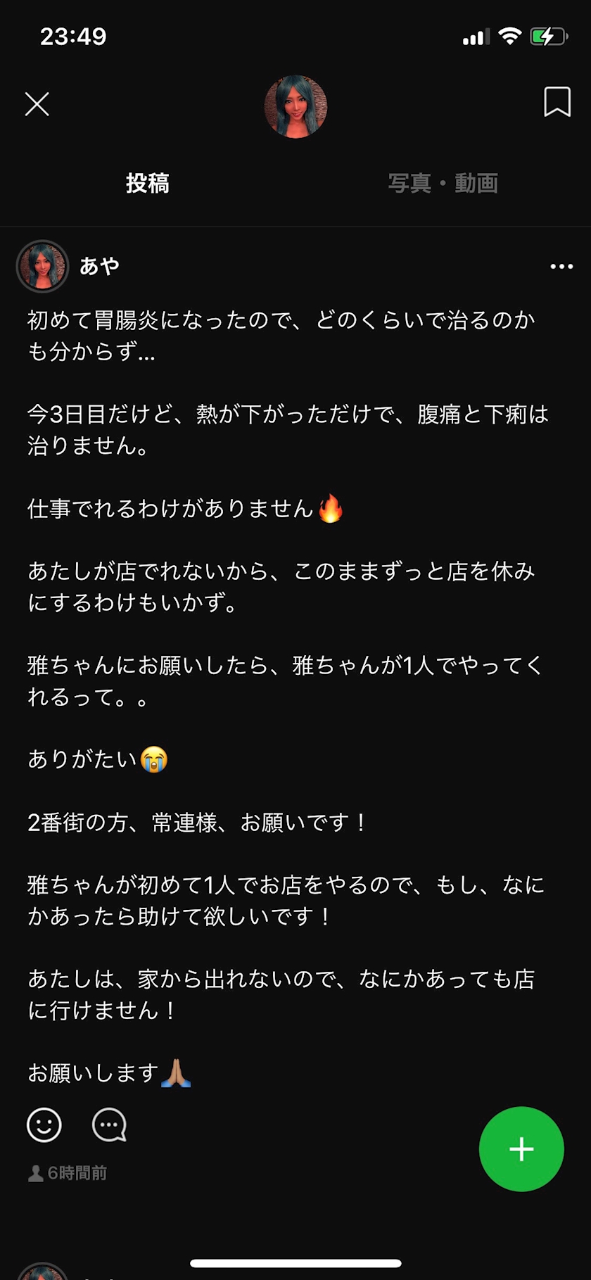 胃腸炎3日目😂🔪 - あや - 彩colour・アヤカラー - 長町のガールズバー