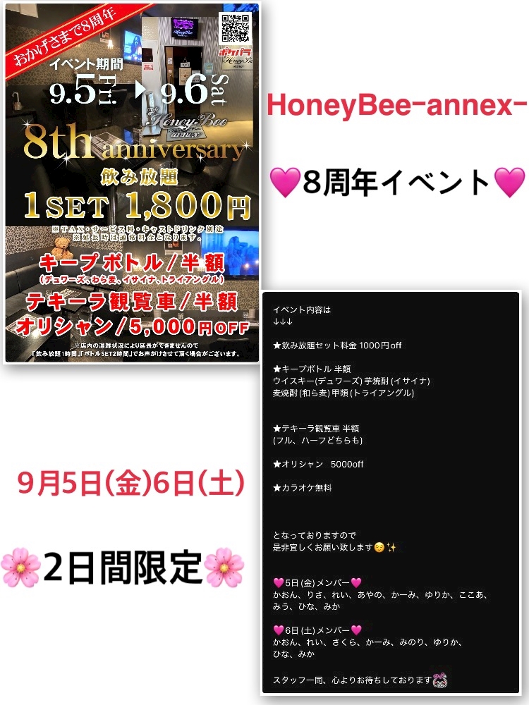HoneyBee annex 8周年記念🎉・:*:・。 - みかぱん - Queen Bee・クイーンビー - 苦竹のガールズバー