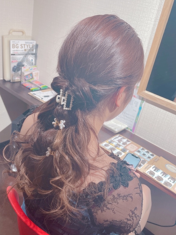 ヘアアクセ付けると華やかで