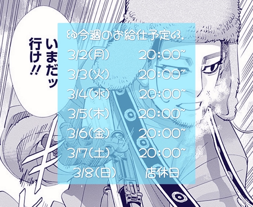 とりあえず今週のお給仕予定です!