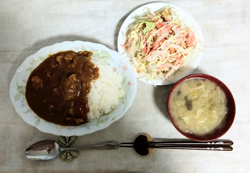🩷なすカレー&カニカマサラダ🩷
