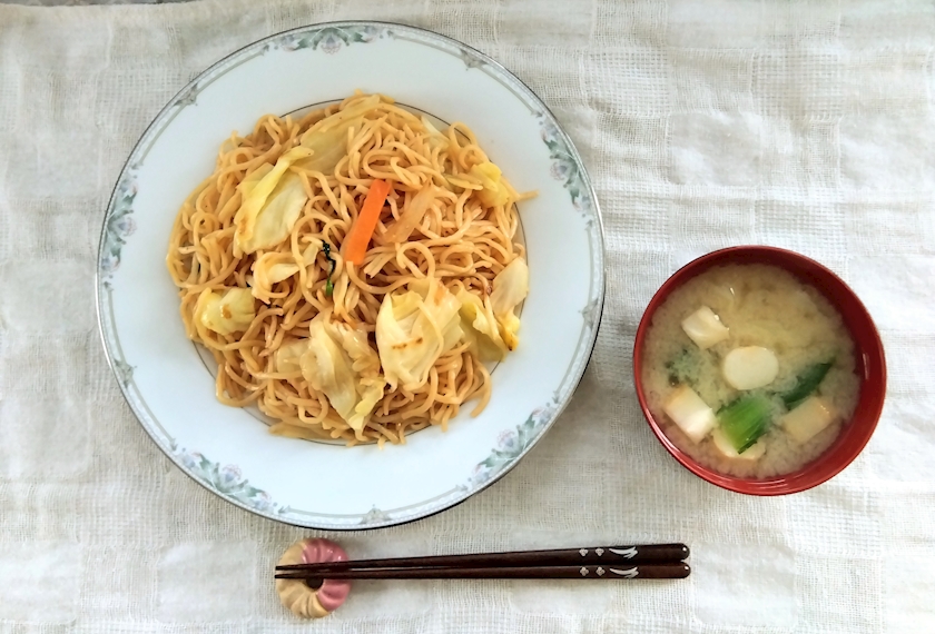 🩷大盛り焼きそば&お麩入り味噌汁🩷