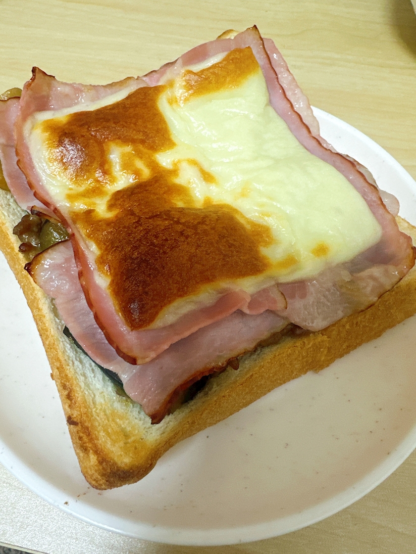 パンの上にのせてベーコンonチーズで!