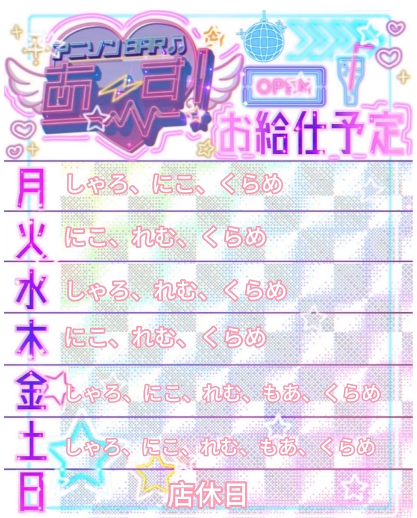 今週のログイン予定 - にこ - あ〜す! - 長崎市・思案橋のガールズバー