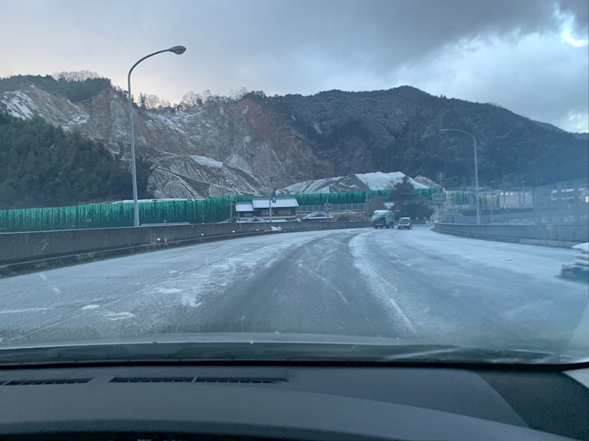 雪道を走るアスファルト上で