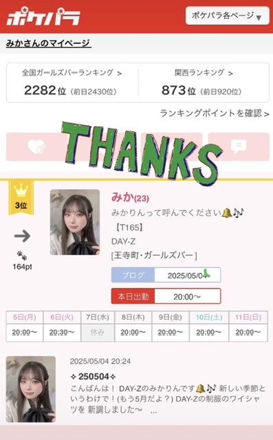 ︎︎⟡︎︎250505⟡ - みか - DAY-Z・デイジー - 王寺町のガールズバー