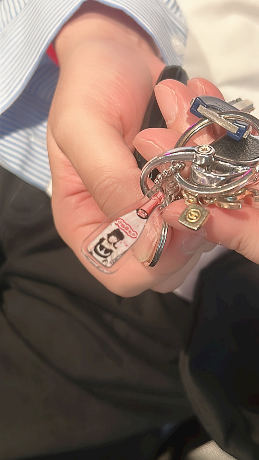もかシャンパンのアクキーをつけてくれてる!