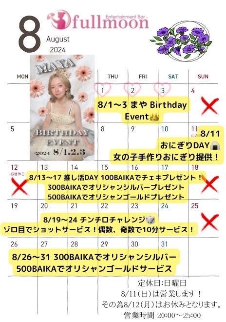 8月のイベント情報❕[1] - まや🐨 - Entertainment Bar FULLMOON・フルムーン - 岡山市(岡山駅前)のガールズバー