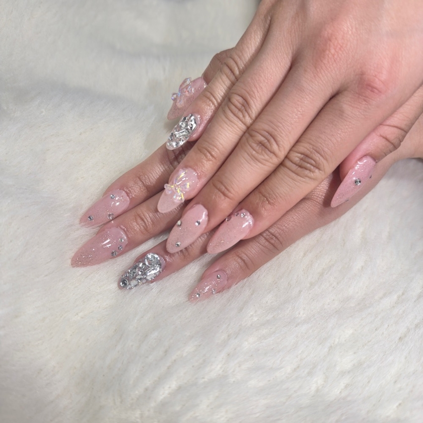 手が長く綺麗に見えるようストーンを散りばめたり