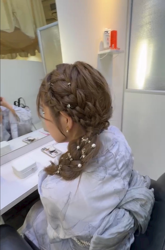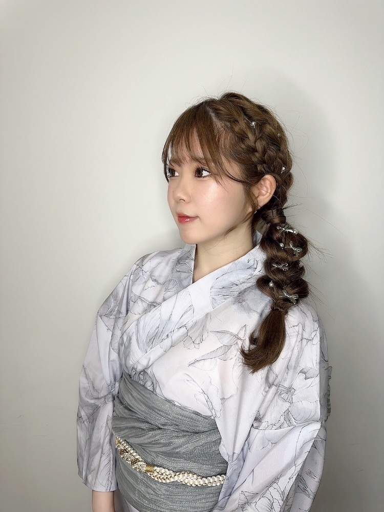 髪型はサイド編みおろし