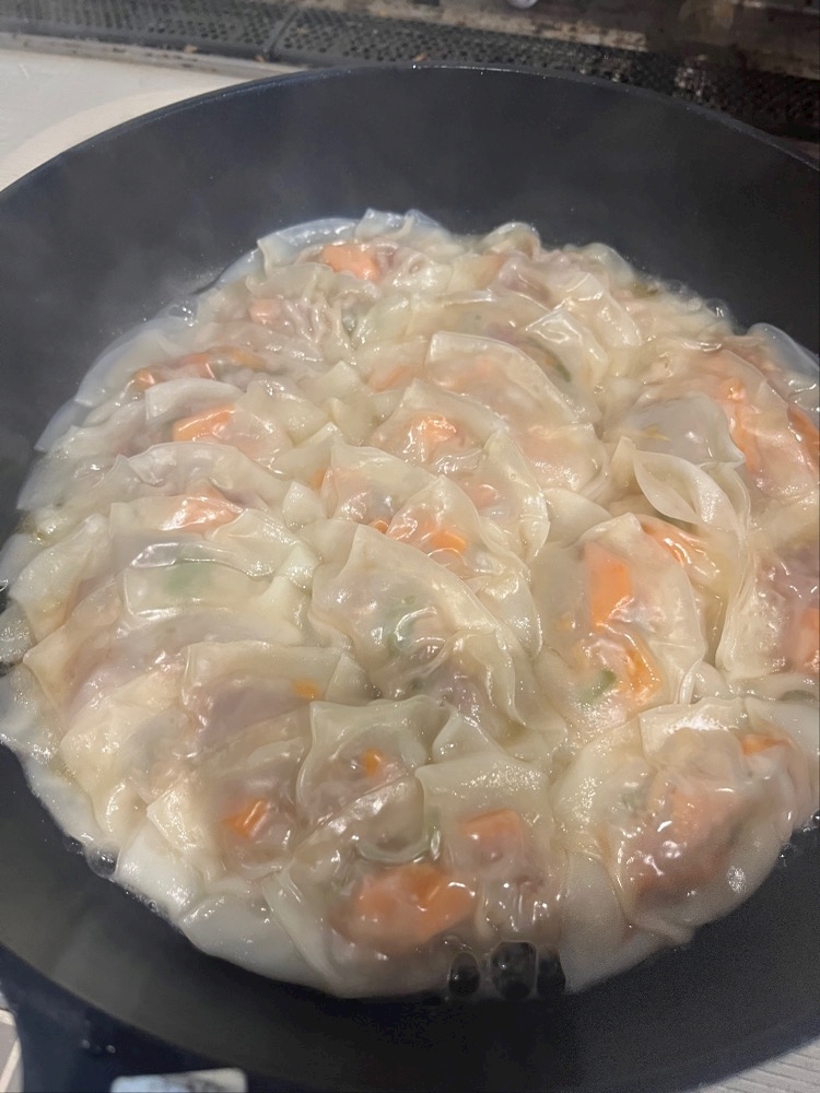 餃子作ったら水の量間違えて全部くっついたんじゃけど🥟🫥