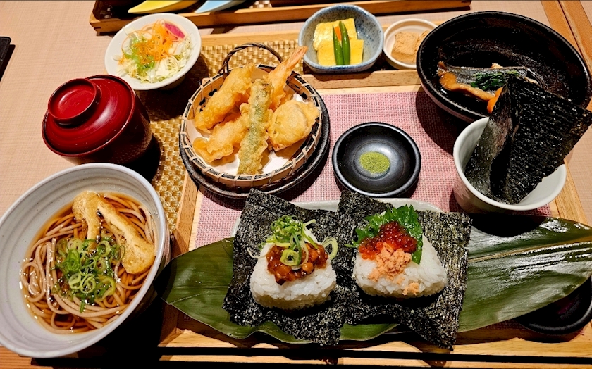 その時に食べたおにぎりと蕎麦御膳。
