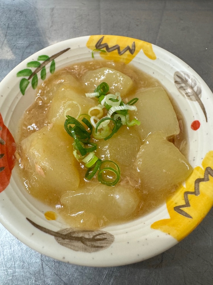 最初はお砂糖だけで冬瓜が透明になるくらいまで煮てからツナ缶や調味料を入れて片栗粉でトロミをつければ出来上がり👍