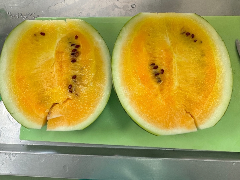 今日は昨日買った金色羅皇(こんじきらおう)スイカを持って出勤ꉂ🤣w𐤔