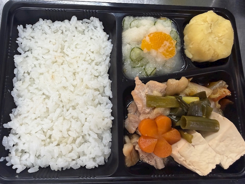 最近はこんな感じのお弁当を約40食ほど作っては2階、3階へ運んでます💦