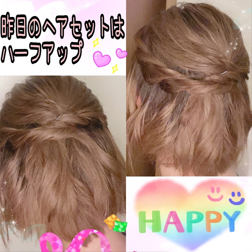 昨日はハーフアップして