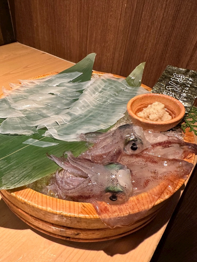 山口県直送の泳ぎイカのお造りと高知県から空輸するカツオの藁焼きタタキが名物‼