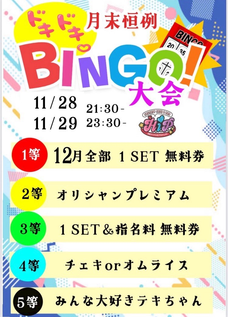 明日はビンゴ大会‼️ - あやの - 本町アイドル化プロジェクト -H.i.P.-・ホンマチアイドルカプロジェクト - 本町のコンカフェ