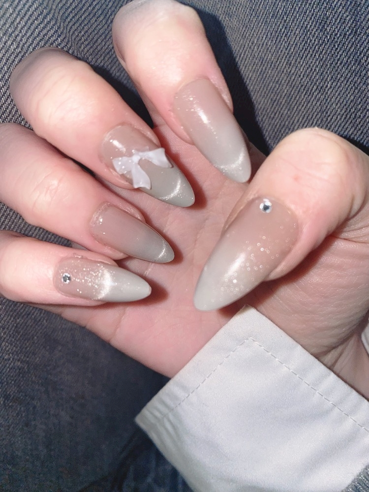 昨日つけたネイルチップのリボンが死んじゃった...🎀
