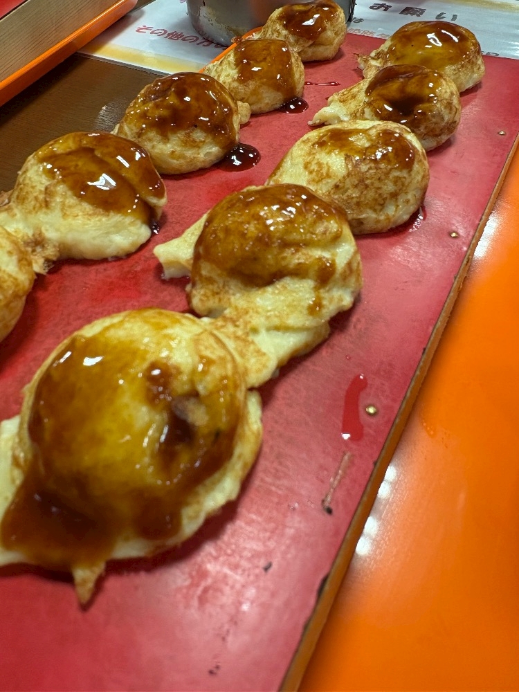 明石焼きにソースつけて出汁で食べるんです!