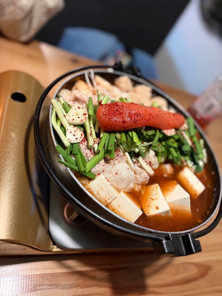 辛いのが大丈夫な2人ということで少し辛めのもつ鍋を