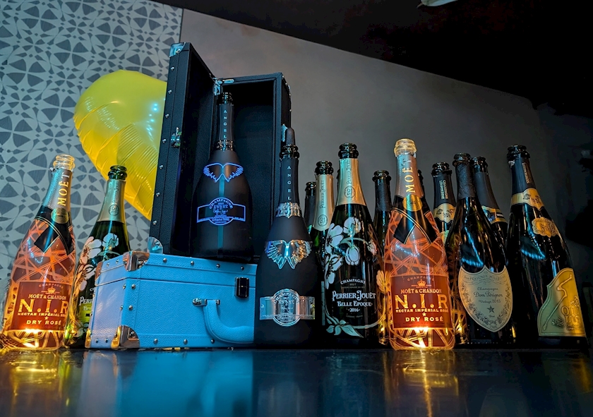 シャンパン並べて撮影会して