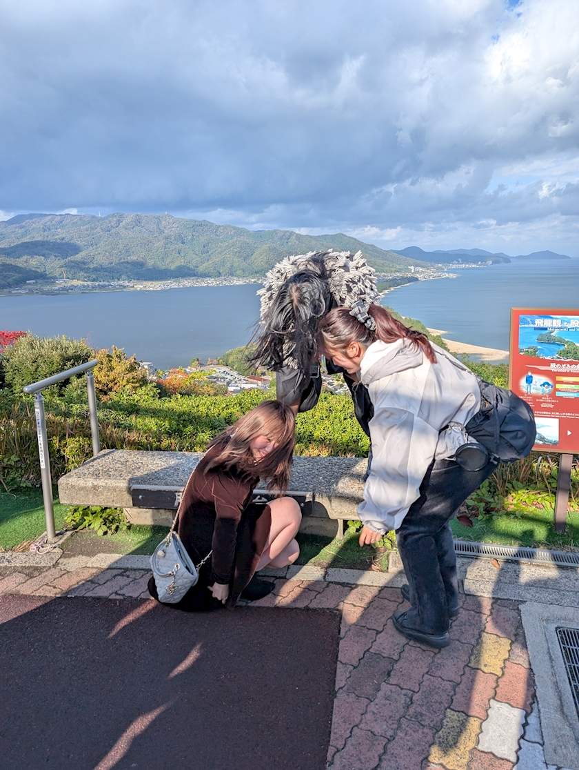 股のぞきしたいのをアシストする2人