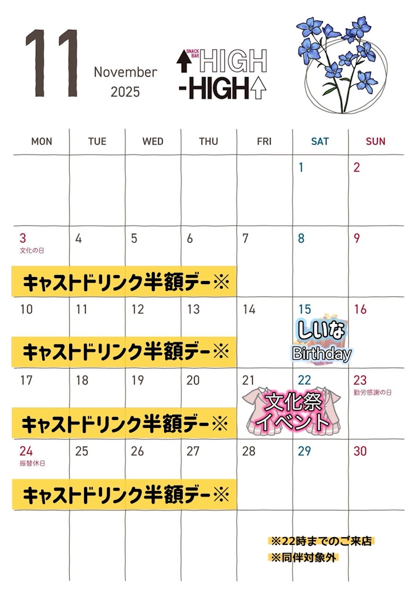 11月17日 - かのん - SNACK HIGH HIGH・ハイハイ - 大国町のスナック