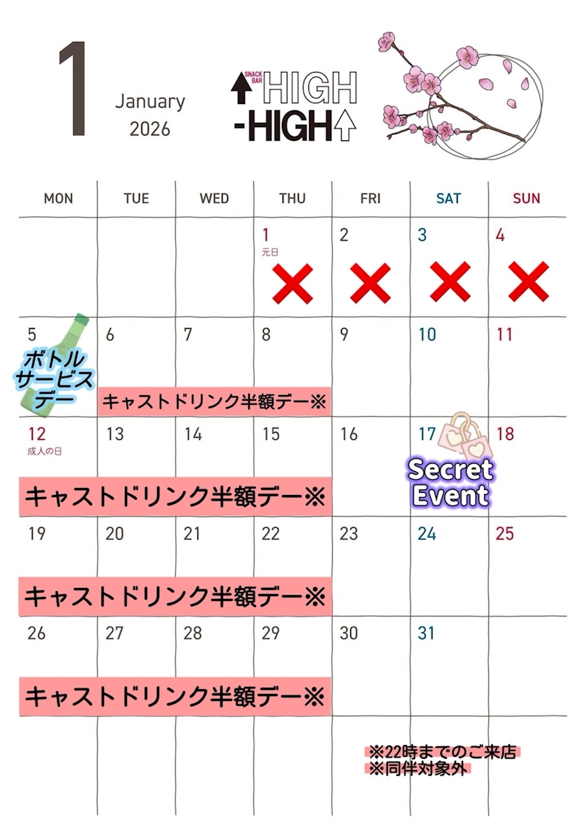 1月30日 - かのん - SNACK HIGH HIGH・ハイハイ - 大国町のスナック