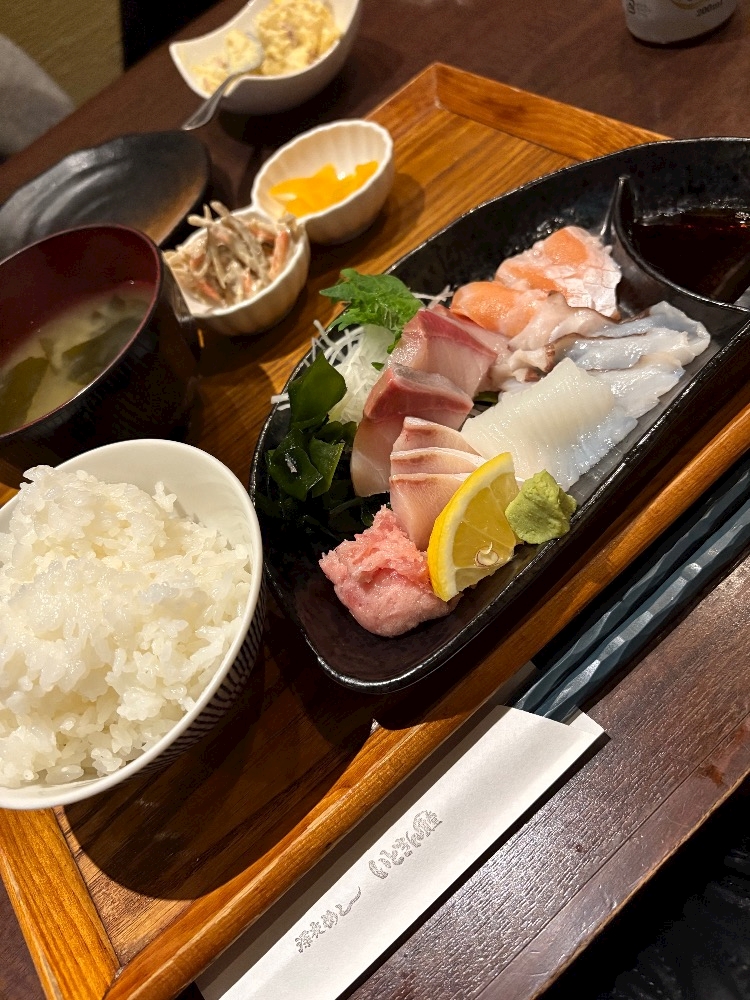 私はあまり食べれる気がしなかったのでいつも通り刺身定食(これでもご飯少なめ)(ご飯少なめ‼️)