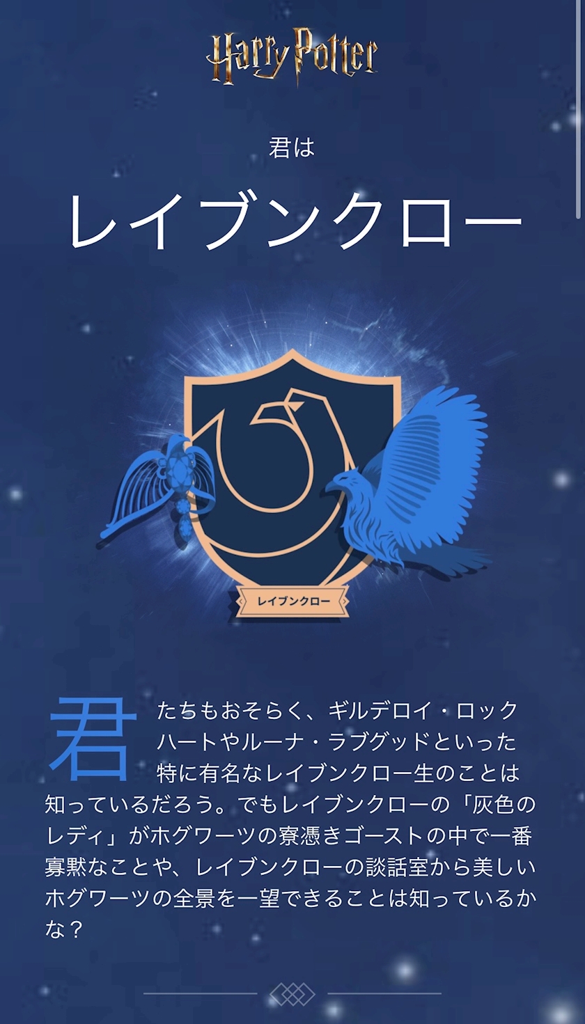 性格診断みたいなのでるなはレイブンクローに分類されるらしい!💙🦅