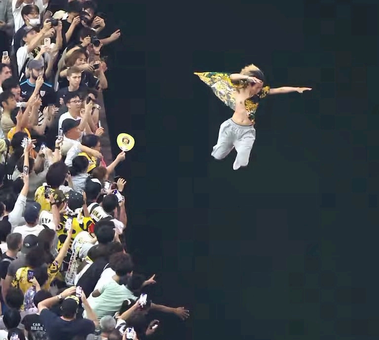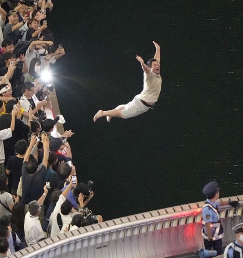 道頓堀に飛び込む人
