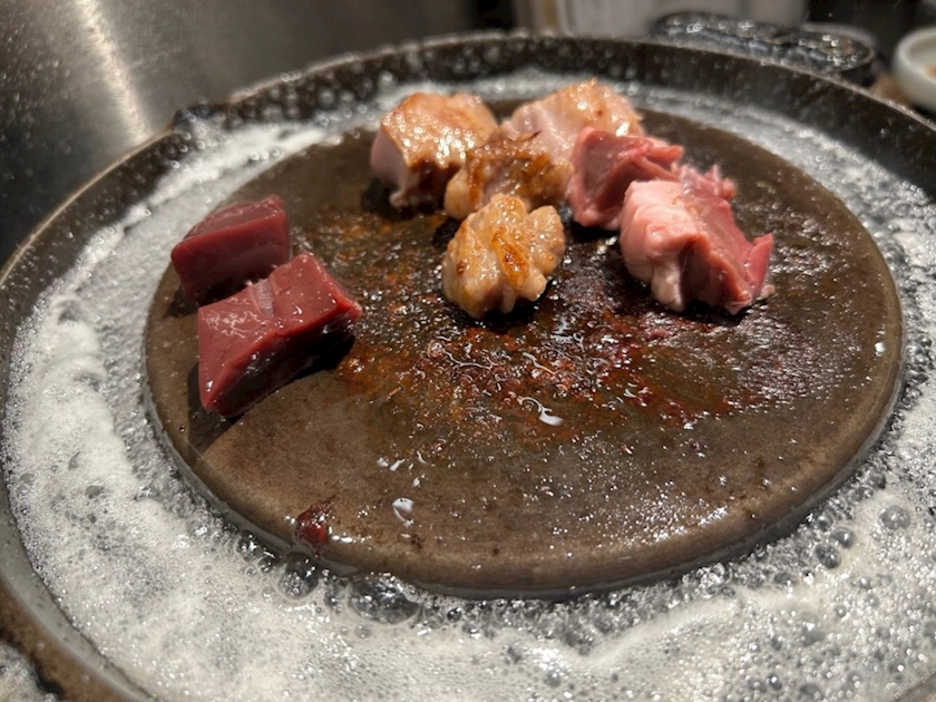 生肉を焼いて食べる