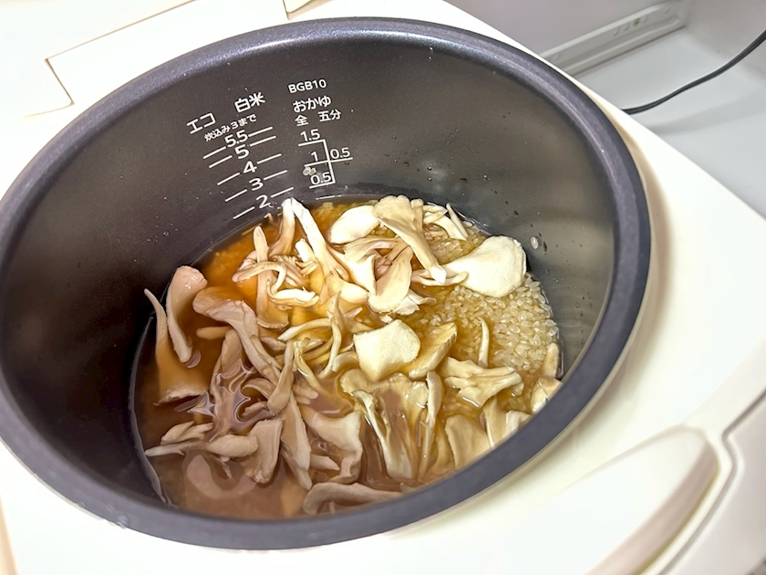 舞茸を乗せて炊く