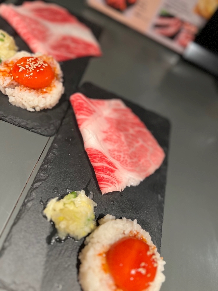 片面焼いて食べる肉寿司♡